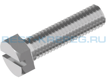 Болты с шестигранной головкой DIN 933 SLOT представляют собой высокопрочный стержневой элемент с полной метрической резьбой и шестигранной головкой с прямым шлицем, что позволяет устанавливать метизы с помощью ключа или отвертки. Монтаж болтов выполняется посредством накручивания нержавеющих гаек или вкручивания резьбового стержня в отверстие с метрической резьбой.