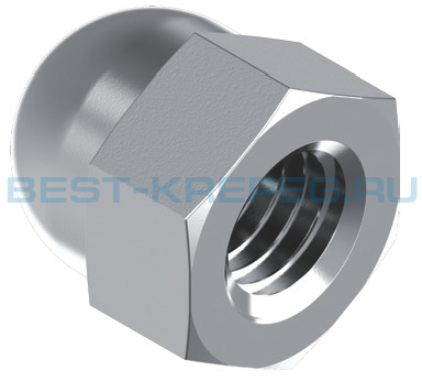 Гайки колпачковые DIN 1587 высокие – представляет собой шестигранную гайку, с одного торца закрытую глухим декоративным элементом со сферической поверхностью. Изделие предназначено для навинчивания на окончания шпилек и болтов. Наряду с защитой торца резьбового элемента и отверстия узла соединения от попадания влаги гайки колпачковые выполняют и эстетическую функцию, придавая собранному устройству или аппарату законченный вид. Часто их применяют исключительно в декоративных целях особенно в стилях: техно, урбан и стимпанк. Кроме того, предохраняют пользователя от всевозможных травм и царапин которые могут нанести острые, выступающие кромки резьбовых соединений.