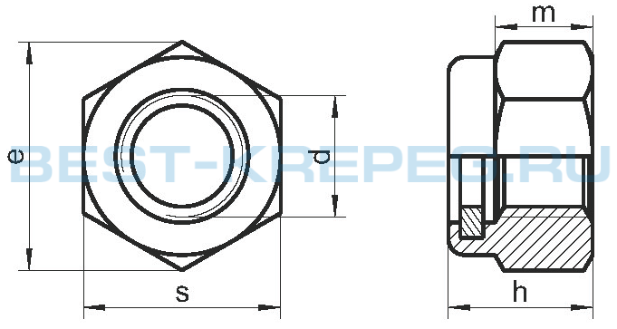 Метиз представляет собой конструкцию, состоящую из металлического изделия с шестью гранями и внутренней резьбой, соединённого с полимерной прокладкой. Вы можете купить нержавеющий крепёж с внутренней резьбой от М2,5 до М30. Высота граней низких гаек может быть от 2,3 мм до 25 мм.