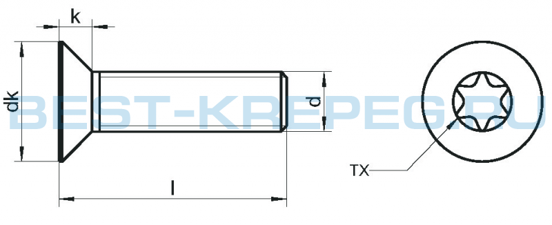 Винт с потайной головкой DIN 965 TX изготавливают в виде стержня с метрической резьбой и конической головкой с антивандальным шлицем TORX («звездочка»). При установке метиза заподлицо в материал с достаточно твердой структурой, например, в сталь или другие металлы, выполняют рассверливание отверстия под потай – зенкование. Более мягкие материалы потайная головка винта DIN 965 продавливает самостоятельно и становиться вровень с поверхностью. Крепеж допускает монтировать в резьбовые отверстия или формировать резьбовые соединения посредством накручивания нержавеющих гаек. Завинчивание винтов с потайной головкой DIN 965 TX выполняют при помощи ручного и электрического инструмента с насадками TORX (шестилучевая звезда или «звёздочка»).
