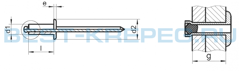 Изделие состоит из металлического вытяжного стержня и заклёпочной нержавеющей гильзы. Внешний диаметр заклёпки предлагается от 3 мм до 6,4 мм. Диаметр бортика заклёпки: от 6,5 мм до 13 мм. Представленные на сайте нержавеющие вытяжные заклёпки возможно купить с длинной гильзы от 6 мм до 40 мм. Заклёпки изготовлены из аустенитной стали.